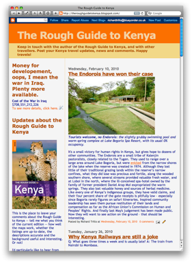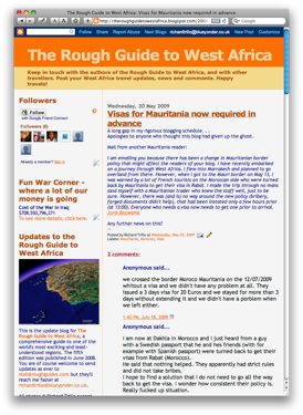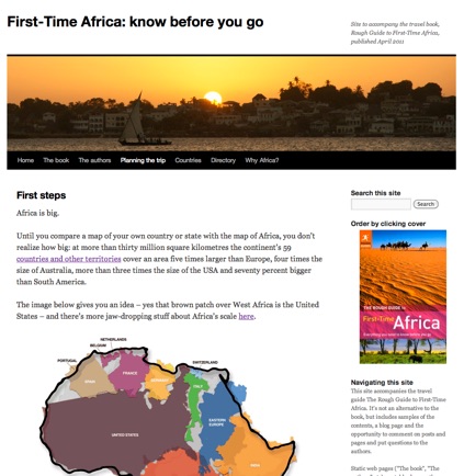 Blogs for each of my Rough Guides – with updates, background, some news analysis and a bit of extra practical assistance beyond what’s in the guide. I’ve recently been writing about security in the Sahel (West Africa), the Maasai Mara wildebeest migration and planned port development at Lamu (Kenya) and the British statistics about travellers who have accidents abroad (First-Time Africa).